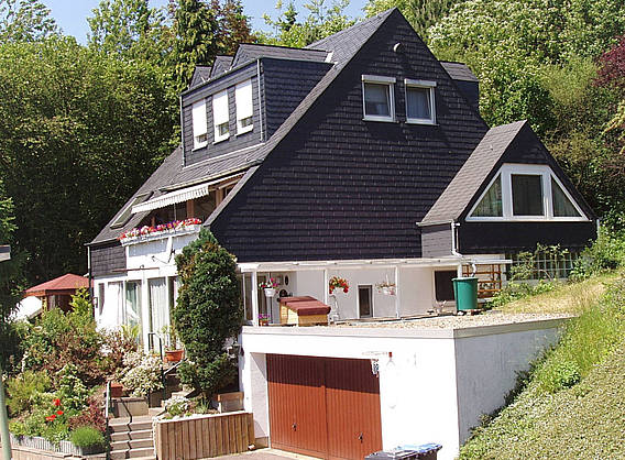 The house is situated 6 kilometers outside the romantic city of Saarburg on a hill called the Hosteberg, in 430 m altitude. It faces the south with a stunning view over the valley. This is recreation pure!