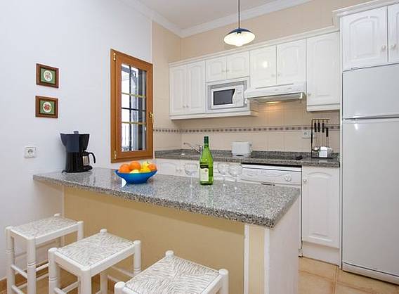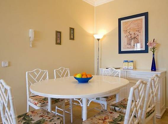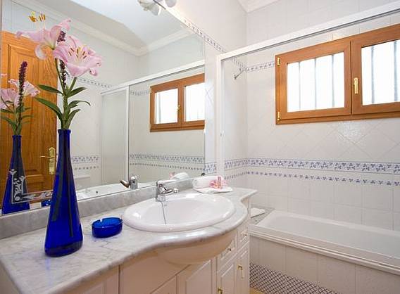 * 3 bedrooms: 1 with double bed and 2 with two single beds in each. * 2 bathrooms one with shower and other with bath, equipped kitchen with dishwasher, oven, microwave/grill, vitroceramic, etc * Washing machine room with iron and ironing board, small patio, dining room with table for 6 persons, decorated with warm colours, TV-Sat and DVD upon request. * Terrace with parcial views to the ocean, large swimming pool of salt water, solarium, sunloungers, table, chairs, BBQ and parking.